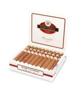 Flor De Copan Churchill: Cedar-wrapped Honduran craftsmanship. Creamy wood evolves into sweet nuts, leather, coffee