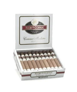 Indulge in the bold, aromatic Flor De Copan Maduro Corona, a full-bodied Honduran cigar with rich, complex aromas of conifer and chocolate for an authentic smoking experience.