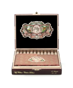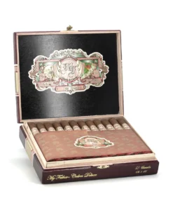 My Father Cedros Deluxe Cervantes: This oily Lonsdale delivers a steady draw with dense smoke, featuring spicy leather, earth, salt, and cinnamon, finishing with white pepper.