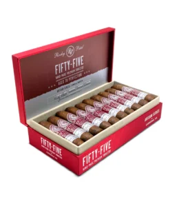 Rocky Patel Fifty-Five Corona showcases a Maduro Nicaraguan wrapper with Costa Rican and Nicaraguan tobaccos from Tavicusa, delivering notes of earth, dried cranberries, and honey.